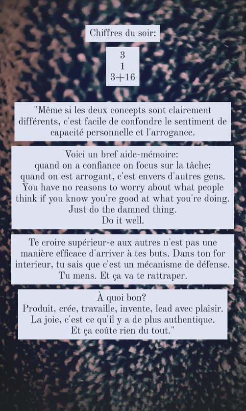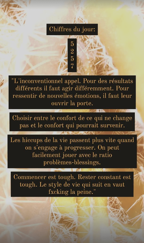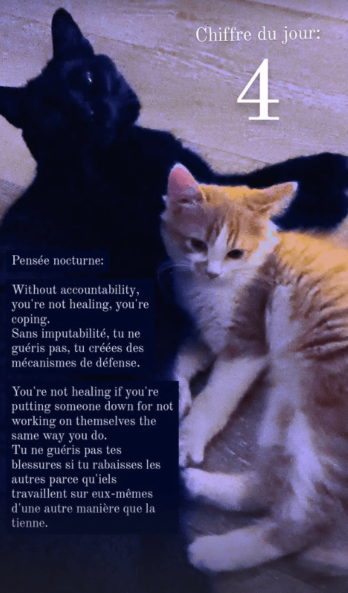 Depuis le déclenchement de la plus récente guerre, j’ai ralenti un peu. Je trouvais indécent de pondre des citations sur le développement personnel quand le monde entier devait se tourner vers la dénonciation de crimes à l’humanité. Petit à petit, je m’y remets. Pour les attraper, ce sera seulement sur les réseaux sociaux par contre.